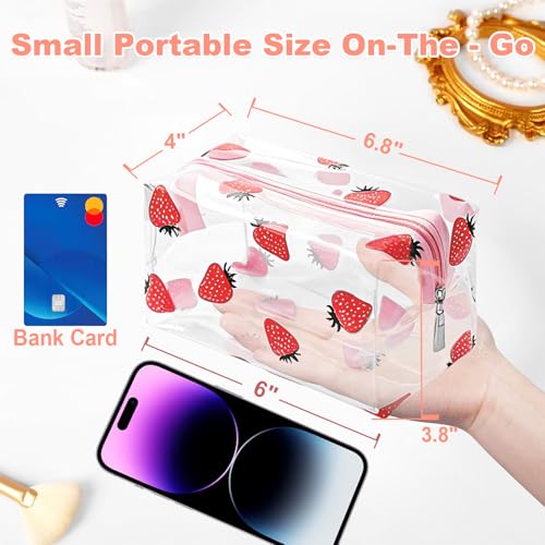 Product Name: Clear makeup bag Material: PVC Material Size: 6.8 inches long, 4 inches wide, and 3.8 inches high Colors: Clear/Red Strawberry What You Get: 1*Pack clear cosmetic bags
