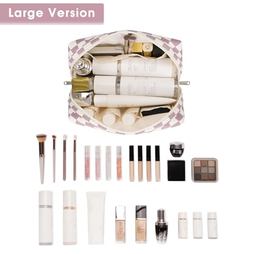 Narwey Checkered Makeup Bag Pink Travel Cosmetic Bag Organizer Toiletry Bag Make Up Bags with Compartments for Women Girls (Large, Dusty Rose Checkerboard)